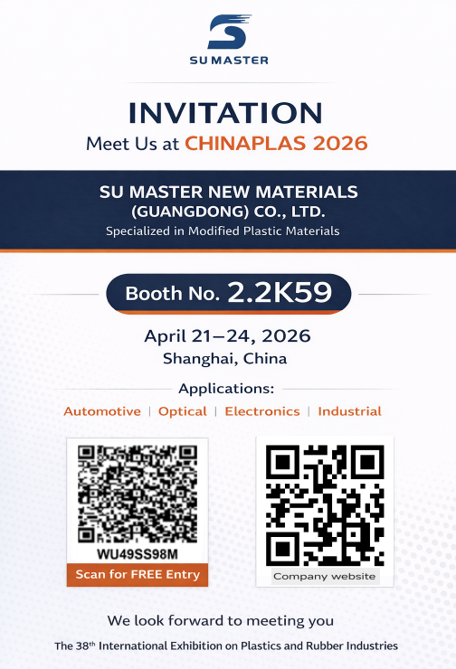 Su Master New Materials (Guangdong) Co., Ltd. is a leading domestic manufacturer of high-quality modified plastics, specializing in the research and development and manufacturing of materials such as PMMA, PC, PC/ABS, PA6, PA66, TPE, TPU, ABS, and PETG. The company has 20 years of industry experience and, with its professional production lines, rigorous processes, and clean rooms, achieves a monthly production capacity of 2,000 tons. The products include multiple modified series such as toughening, super toughness, impact resistance, light diffusion, high transparency fire resistance, medical grade, anti-static, and infrared penetration, widely used in various fields such as home living, automotive transportation, electronics and electrical, and green energy. Suda Master insists on driving development through innovation, providing customers with efficient, high-quality one-stop solutions for modified plastics, and is committed to promoting sustainable development in the industry and improving quality of life.